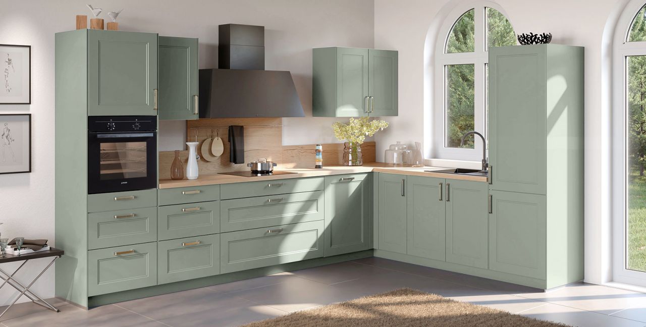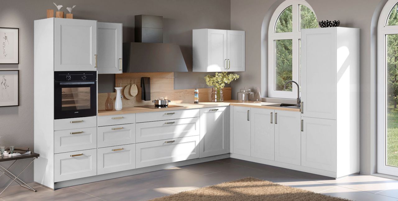 Inklusive Einbaubackofen schwarz Junker JF1300061 Energieeffizienzklasse A, Glaskeramik Kochfeld Junker JR36DT54, Dunstesse in schwarzer Gusseisenoptik Faber CHLOE XL Energieeffizienzklasse C, Kühlschrank mit **** Gefrierfach Junker JC20GCSE0 Energieeffizienzklasse E, Einbau-Designspüle Elleci Logik 300, XL-Schränken, Unterschränken mit Frontauszügen.