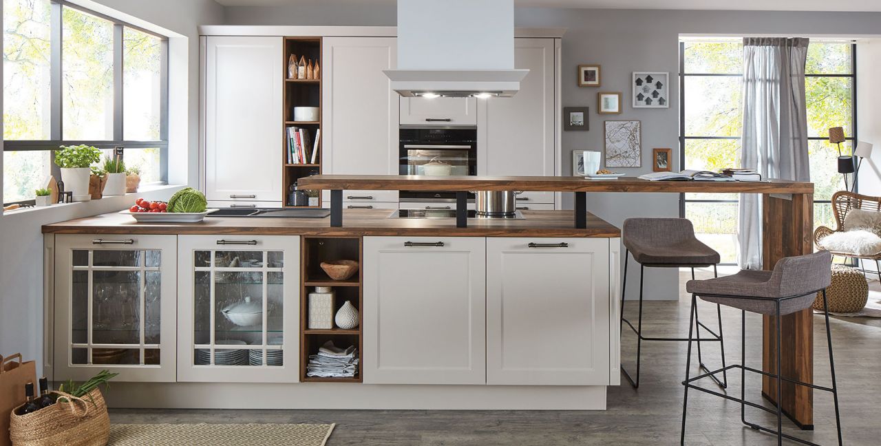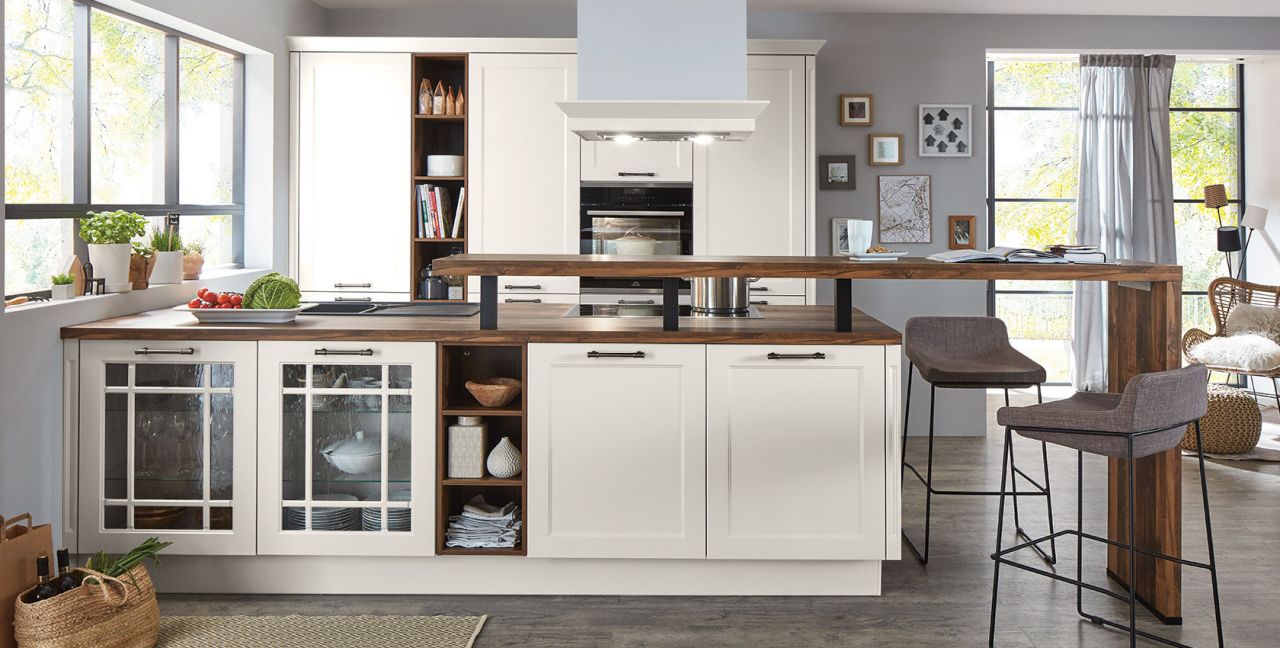 Inklusive Einbaubackofen in Schwarz / Edelstahl Progress PBP43103X Energieeffizienzklasse A+, Glaskeramik Kochfeld Progress PAS8060E, Landhauskamin mit Lüfterbaustein Faber INKASM560LGB Energieeffizienzklasse B, Kühlschrank mit **** Gefrierfach Progress PK1255 Energieeffizienzklasse E, Einbau-Designspüle Schock Formhaus D100, Unterschränken mit Glasrahmentür, Wandschrankregal, Hochschrankregal, Esstheke.
