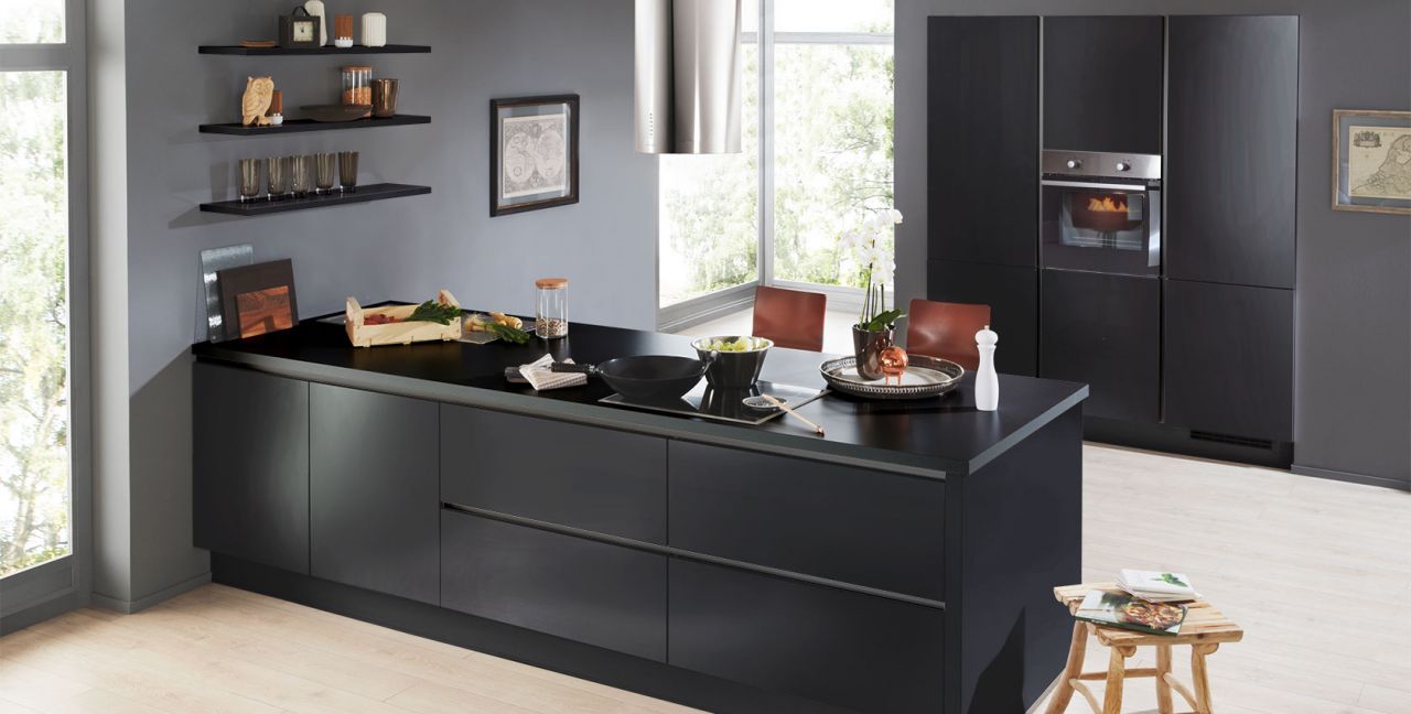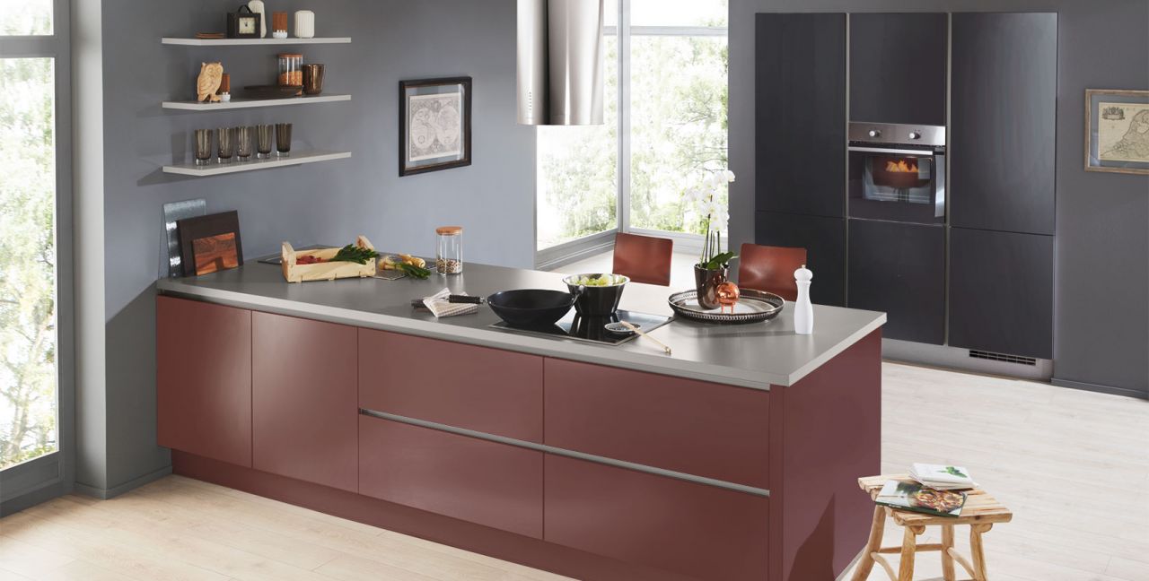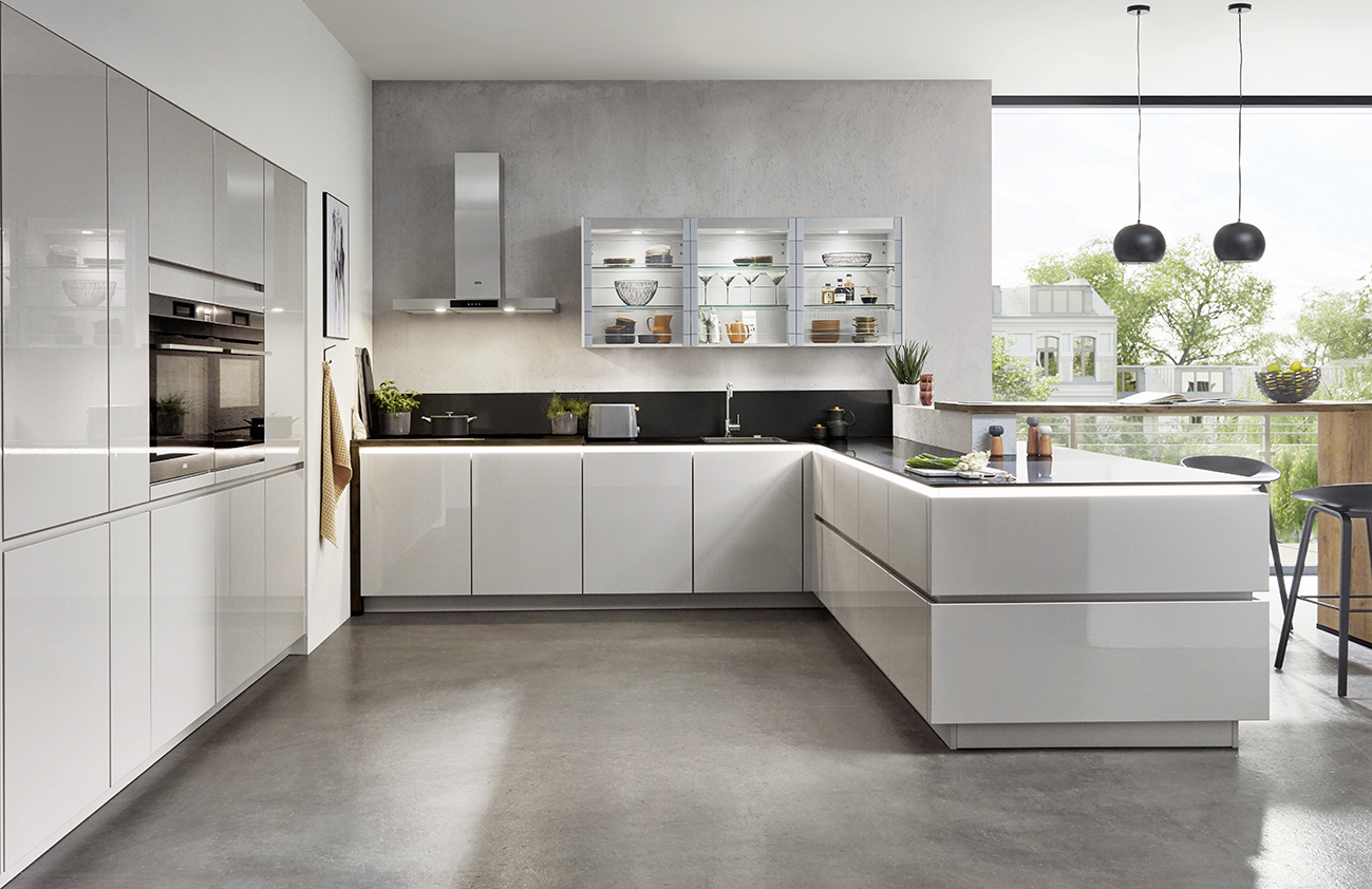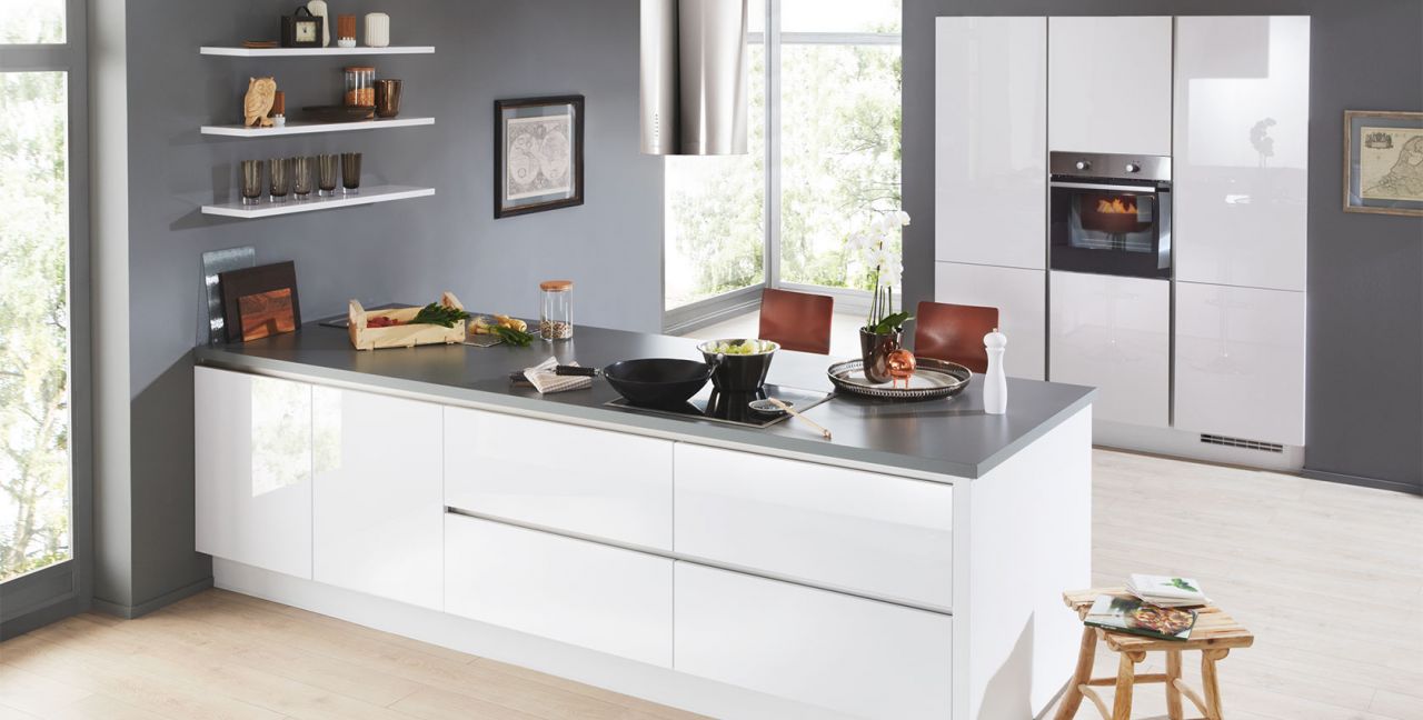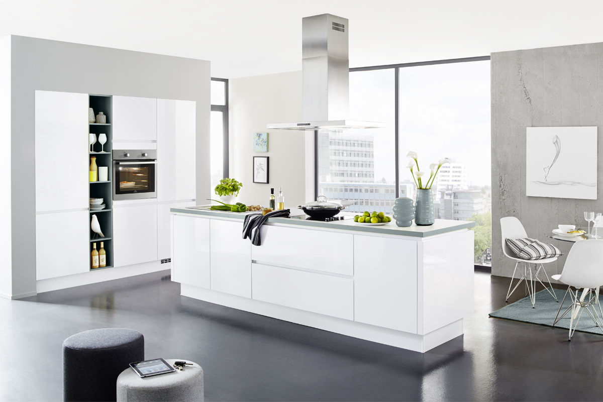 Inklusive Einbaubackofen Edelstahl Laurus LEB5 Energieeffizienzklasse A, Glaskeramik Kochfeld Laurus LCA600, Inselesse Edelstahl Faber CYLINDRA ISOLA IX Energieeffizienzklasse C, Kühlschrank Laurus LKG88E Energieeffizienzklasse E, Einbauspüle Edelstahl Rodi Okio Line 85 Deep, Unterschränken mit Großraumauszügen, Wandborden.