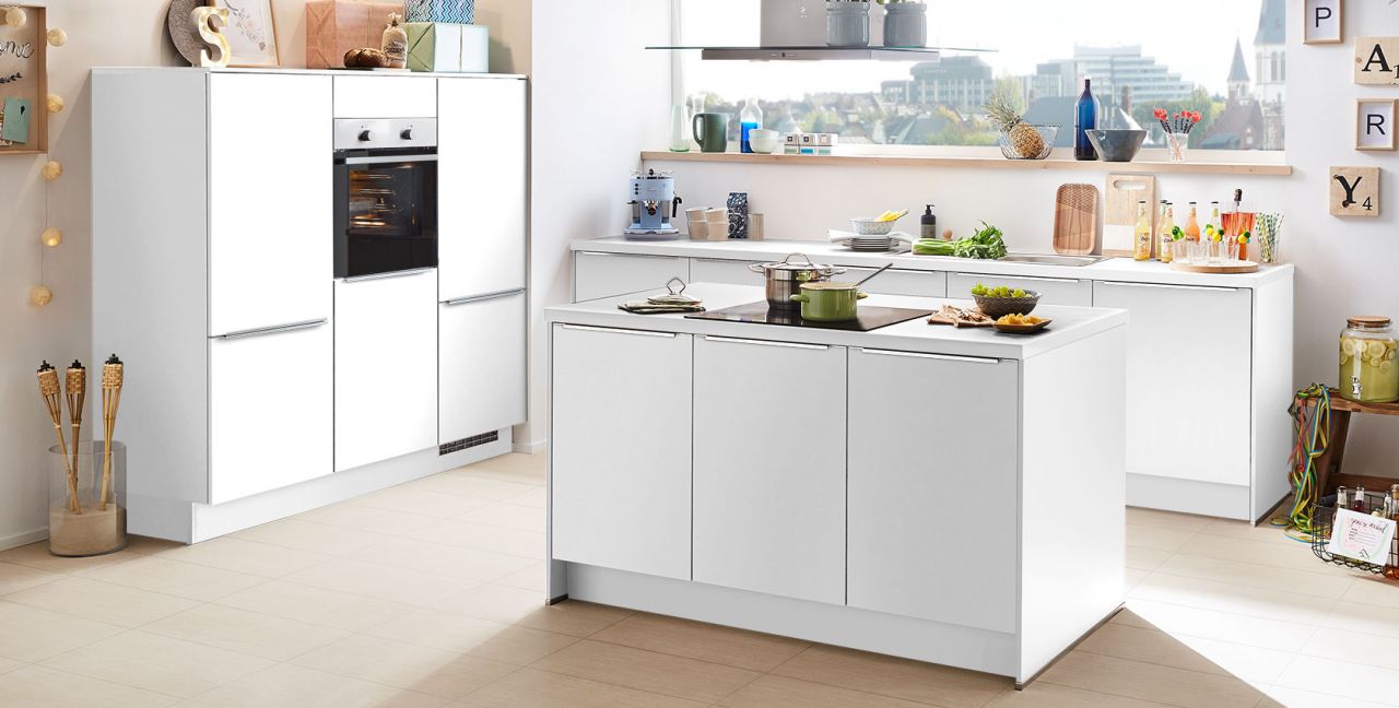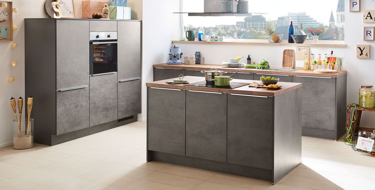 Inklusive Einbaubackofen Edelstahl Laurus LEB3 Energieeffizienzklasse A, Glaskeramik Kochfeld Laurus LCA600, Inselesse Edelstahl / Glas Elica TRIBE INSEL-A Energieeffizienzklasse A, Kühlschrank Laurus LKG88E Energieeffizienzklasse E, Einbauspüle Edelstahl Rodi Okio Line 85 Deep.