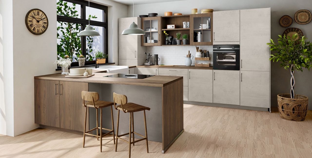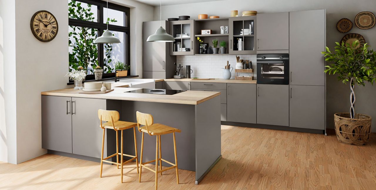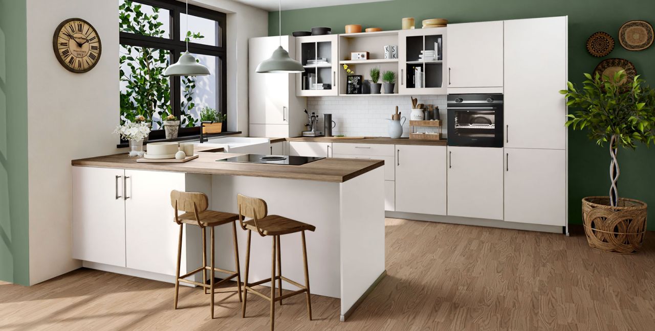 Inklusive Einbaubackofen Edelstahl Siemens HB510ABR1 Energieeffizienzklasse A, Glaskeramik Kochfeld Junker JR36DT54, Flachschirmhaube Elica ELITE 14 60-D Energieeffizienzklasse D, Kühlschrank Junker JC20KCSE0 Energieeffizienzklasse E, Einbau-Designspüle Elleci Logik 300, XL-Schränken, Unterschrank mit Großraumauszügen, Wandschrankregal, Esstheke.